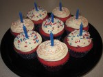 Alright….I’ll admit it…cupcakes probably aren’t the best idea after my three-week divorce from the gym but it IS our nation’s birthday and they ARE red, white, and blue! Once again I’ve convinced myself that baking while a few pounds over my ideal weight is “okay” as long as I’ve got a good reason. Somewhere in between convincing myself its okay and promising myself that I’d bring half of them to work, I started searching for a festive recipe online and came up with this: “Happy Birthday America” cupcakes. One box of white cake mix and some food coloring later and I was in business.