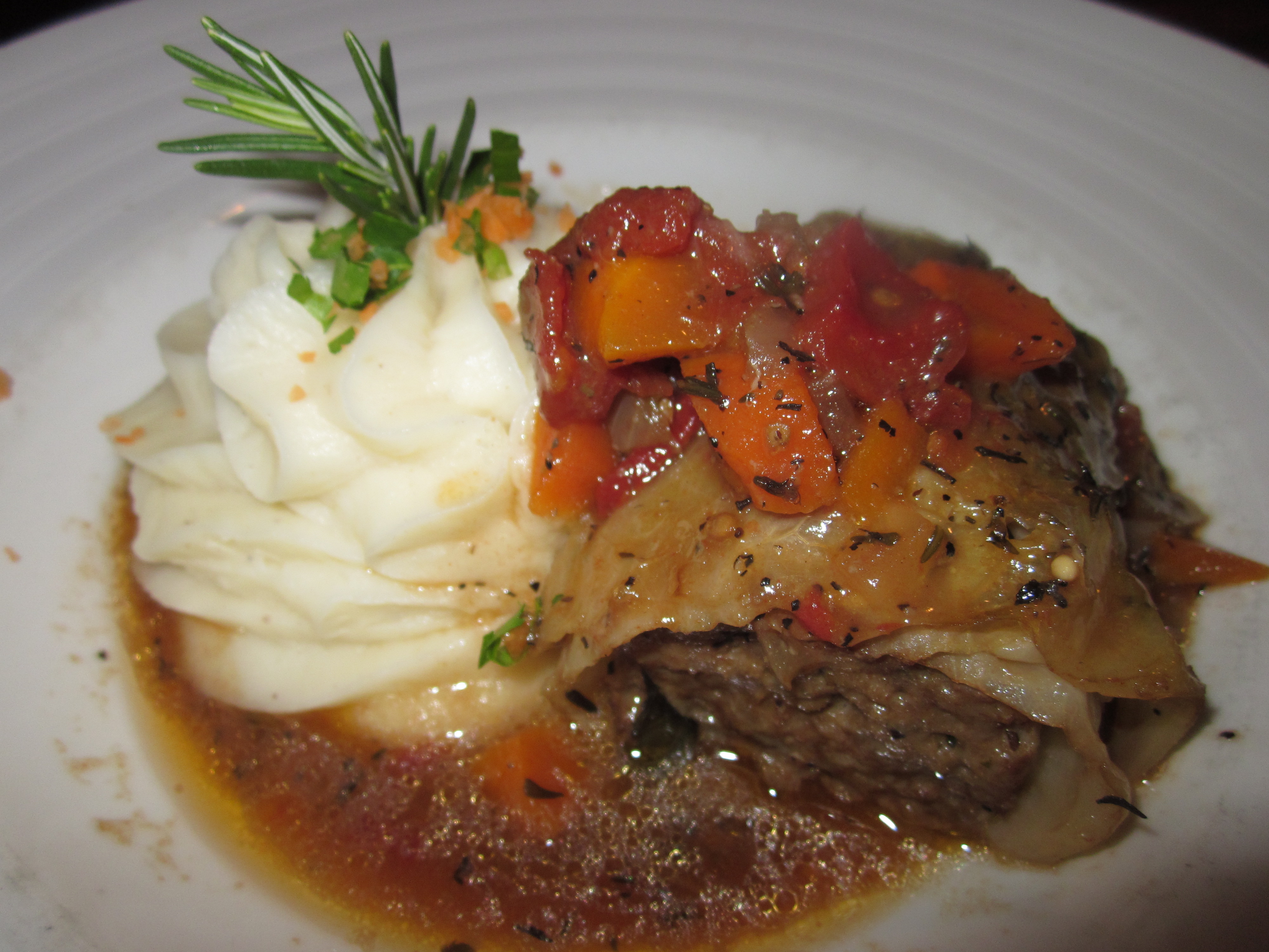 The first night my mom and sister got to town we met a good family friend for dinner at Tucci’s. This cozy little Italian restaurant in downtown Lake Oswego was only a quick jaunt away from our friends condo – which was nice because it was pouring rain! We had a good time catching up and the food was great. My mom and I both enjoyed a new york strip topped with grilled onions and a red wine reduction. The dish was served with  lightly breaded and fried potato fritters (similar to their risotto fritters I told you about a few weeks ago). Yum!