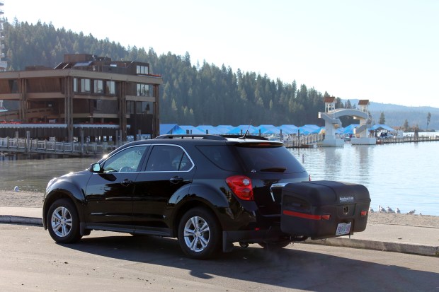 Our honeymoon ride equipped with a StowAway Hitch Cargo Carrier